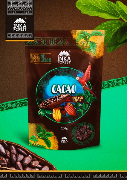 Con el sello característico de Inka Forest siempre pendientes de ofrecerle a sus clientes lo mejor de los productos ancestrales que nuestra biodiversidad peruana nos ofrece y comprometido con la salud ofrece para todos los amantes del cacao los nuevos granos envasados Cacao Nibs glaseados con stevia para que puedan disfrutar de todas sus propiedades sin azúcar, como snack o ingrediente para tus mejores postres o barras energéticas. Este nuevo producto promete hacerte felizmente saludable.